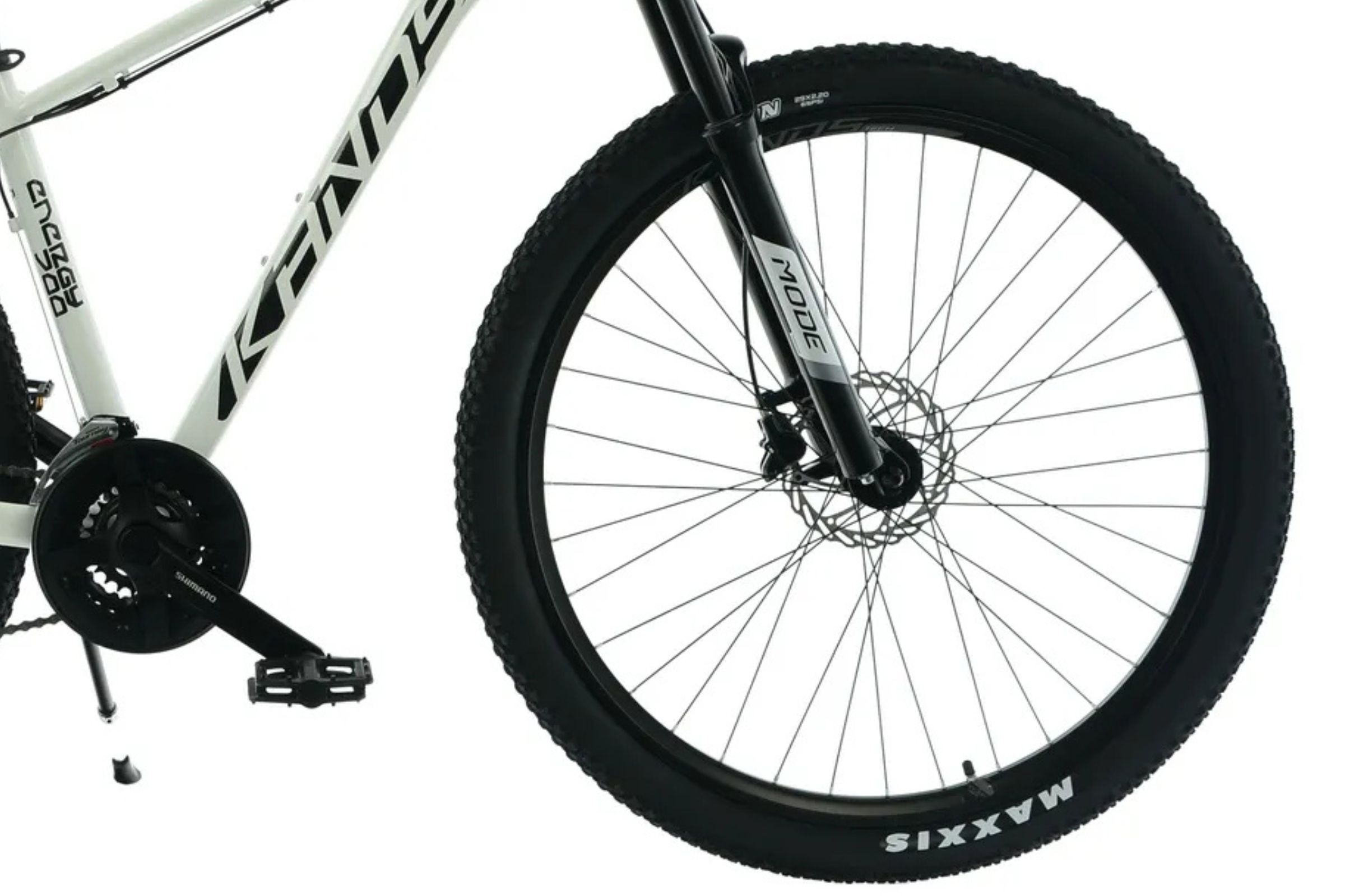 MTB Kands Energy 700 -pyörä, joka on varustettu korkealaatuisilla renkailla, takaa hyvän pidon asfaltilla ja erinomaisen hallittavuuden mutaisilla teillä.