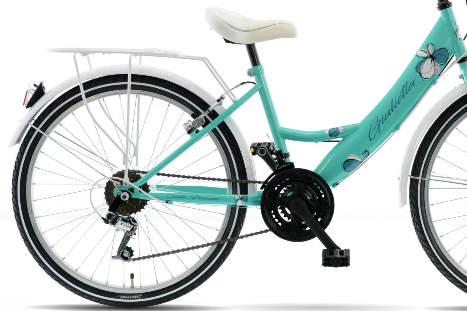 Kands Giulietta on täydellinen lasten polkupyörä, joka yhdistää turvallisuuden, mukavuuden ja elegantin muotoilun unohtumattomaan pyöräilykokemukseen. Sen 24 tuuman renkaat ja kestävä teräsrunko tarjoavat vakautta ja luotettavuutta, tehden siitä ihanteellisen nuorille seikkailijoille.