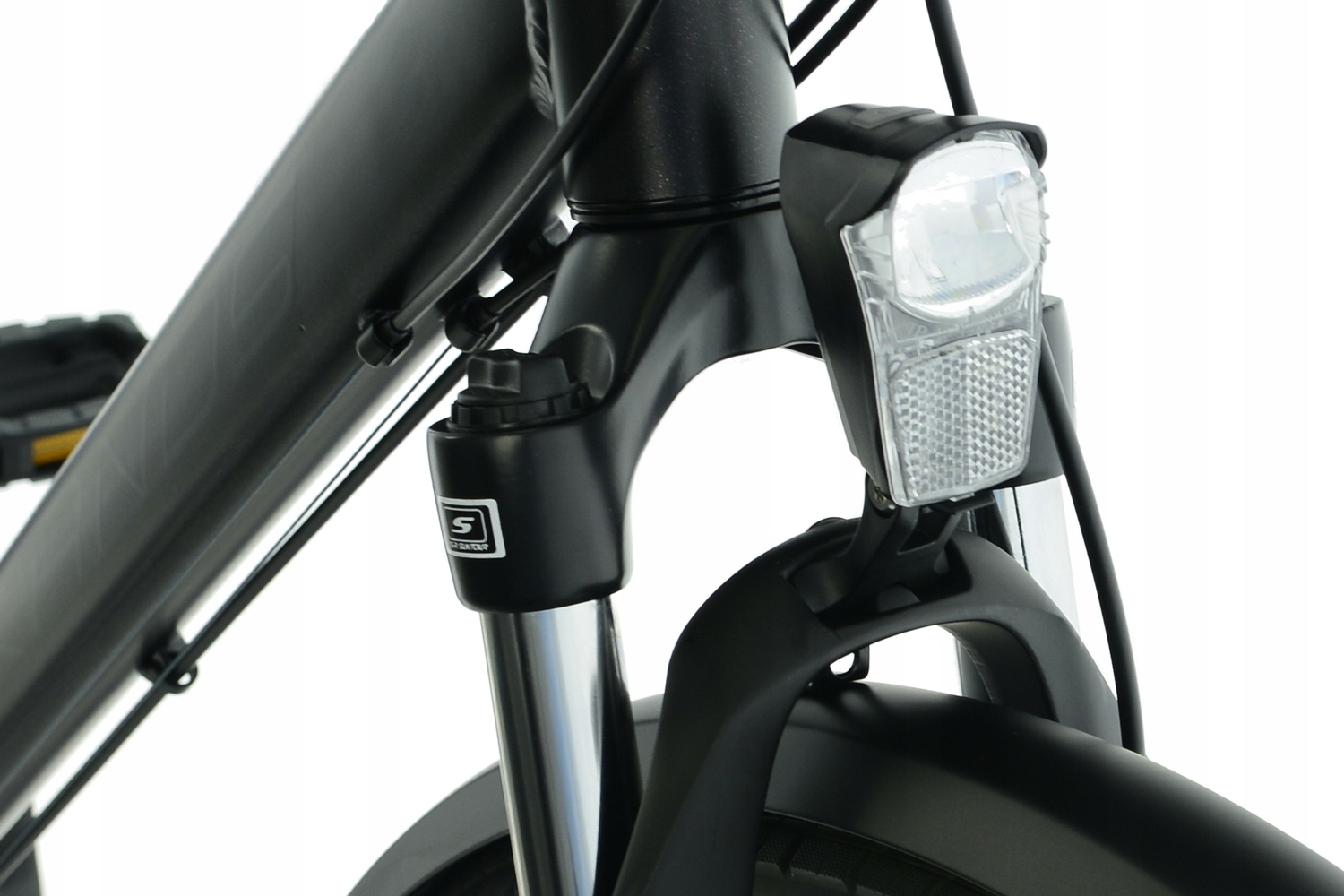 Pentru un confort suplimentar pe teren accidentat, amortizorul SR SUNTOUR cu o cursă de 63 mm preia șocurile eficient, iar roțile de 28 de inci echipate cu anvelope IMPAC de 4,5 cm lățime oferă o aderență excelentă și rezistență crescută la perforare. Frânele puternice și precise îți oferă controlul necesar pentru a naviga în siguranță, indiferent de traseu.