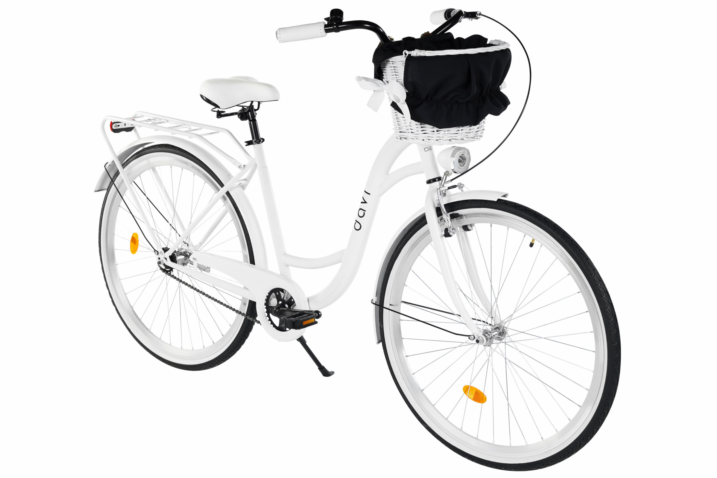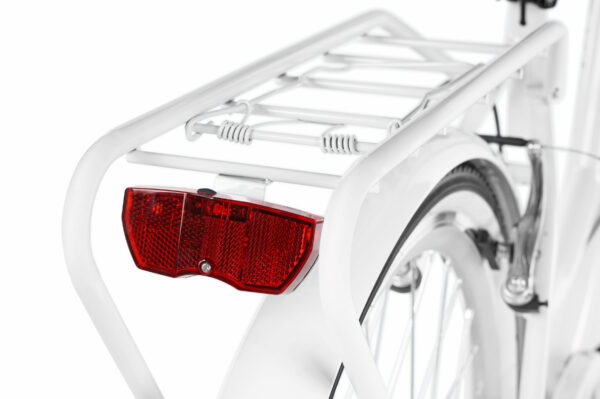 Pyörässä on klassisella tavaratelineellä varustettu takaosa, johon voi kiinnittää lastenistuimen, lisälaukkuja tai muita tarvikkeita. Tämä polkupyörä toimitetaan täydellisenä mukana kori ja kaikki kuvassa näkyvät lisävarusteet.