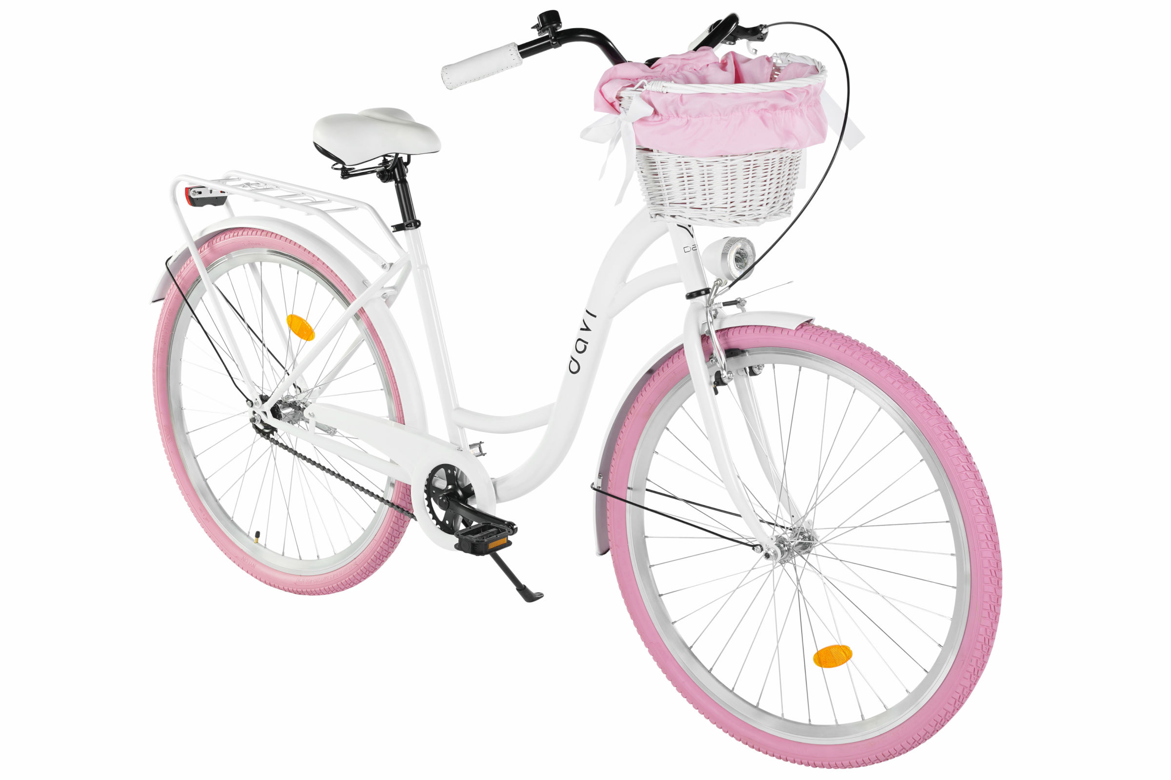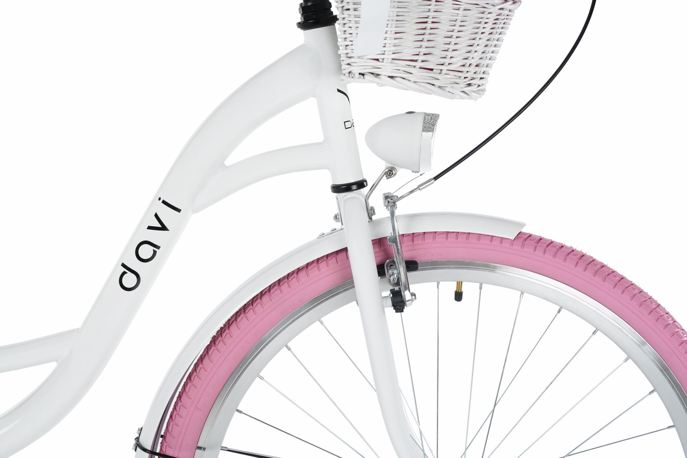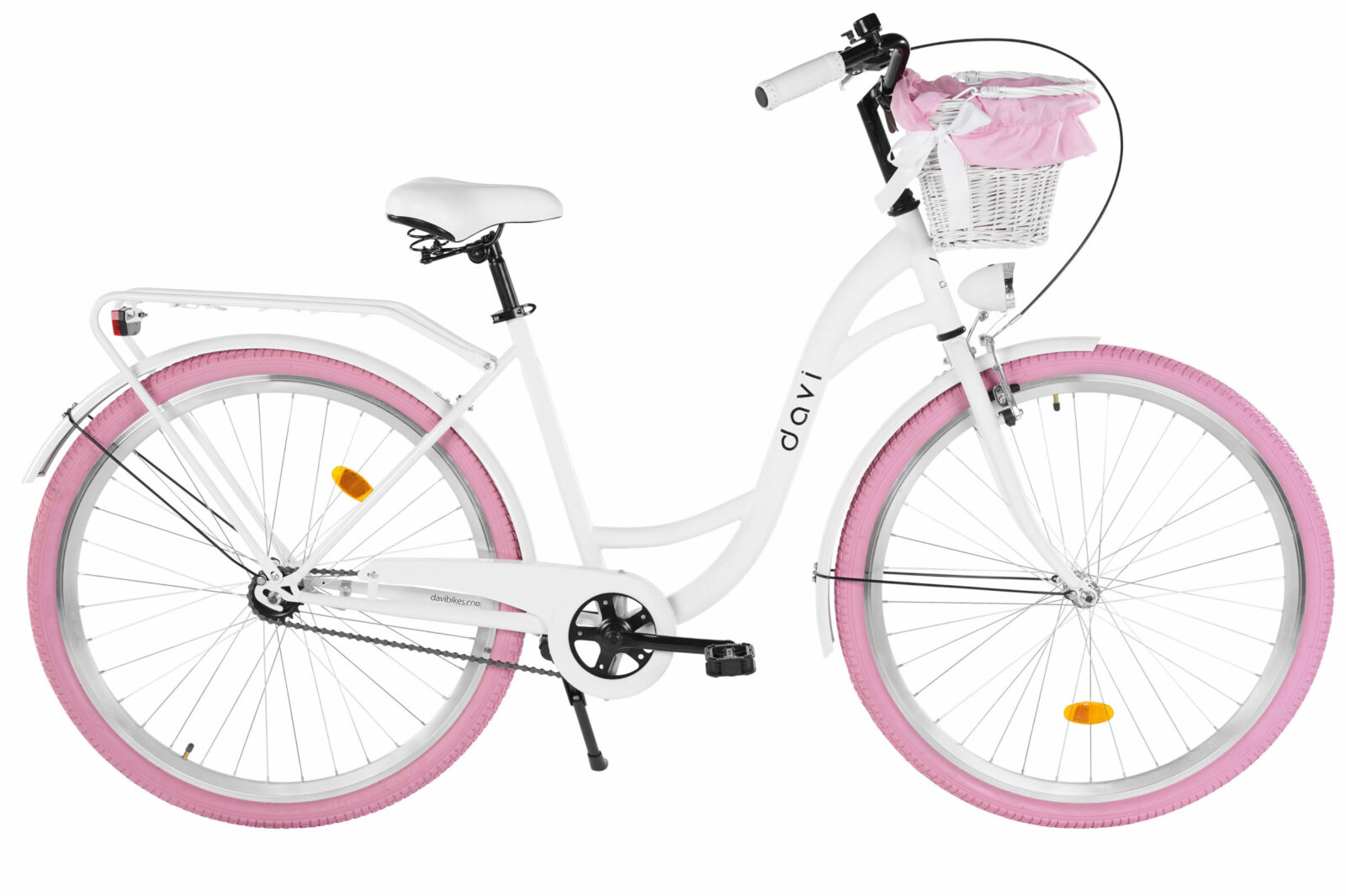 Naisten kaupunkipyörä Davi Lila 1 vaihde, 28″, 160–185 cm, Valkoinen/Vaaleanpunainen