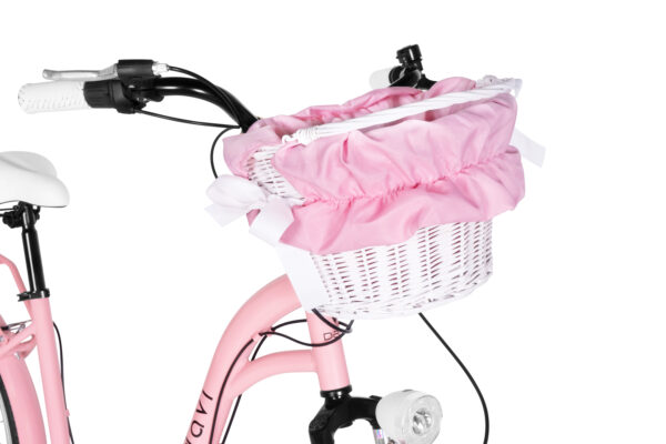 Klassinen etukori sopii täydellisesti pienten ostosten tai vaikka kukkien kuljettamiseen. Pyörän takaosassa oleva tavarateline tarjoaa lisätilaa, ja siihen voi kiinnittää lastenistuimen, laukut tai muita tarvikkeita. Tämä polkupyörä toimitetaan täydellisenä mukana kori ja kaikki kuvassa näkyvät lisävarusteet.