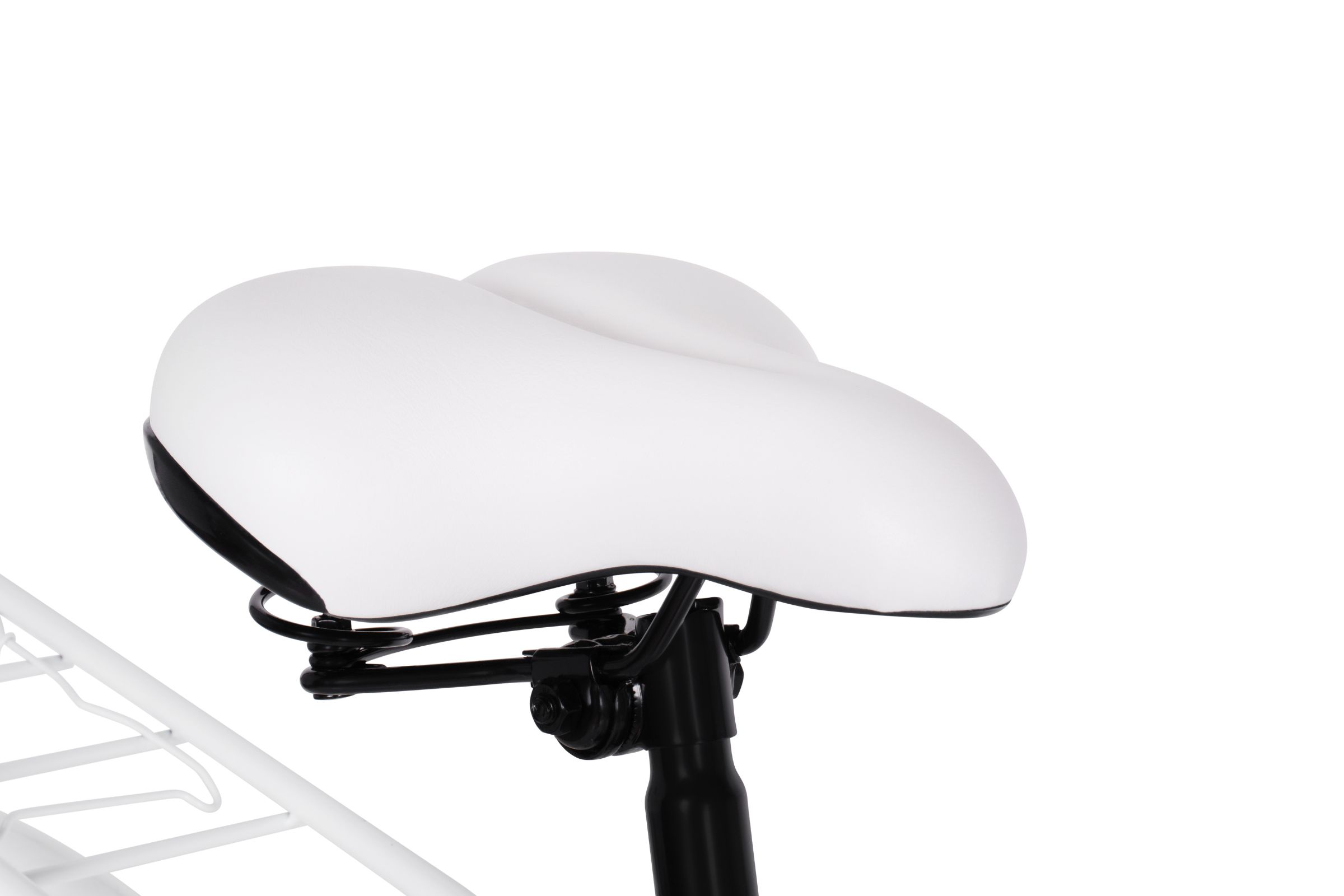 Klassinen etukori sopii täydellisesti pienten ostosten tai vaikka kukkien kuljettamiseen. Pyörän takaosassa oleva tavarateline tarjoaa lisätilaa, ja siihen voi kiinnittää lastenistuimen, laukut tai muita tarvikkeita. Tämä polkupyörä toimitetaan täydellisenä mukana kori ja kaikki kuvassa näkyvät lisävarusteet.