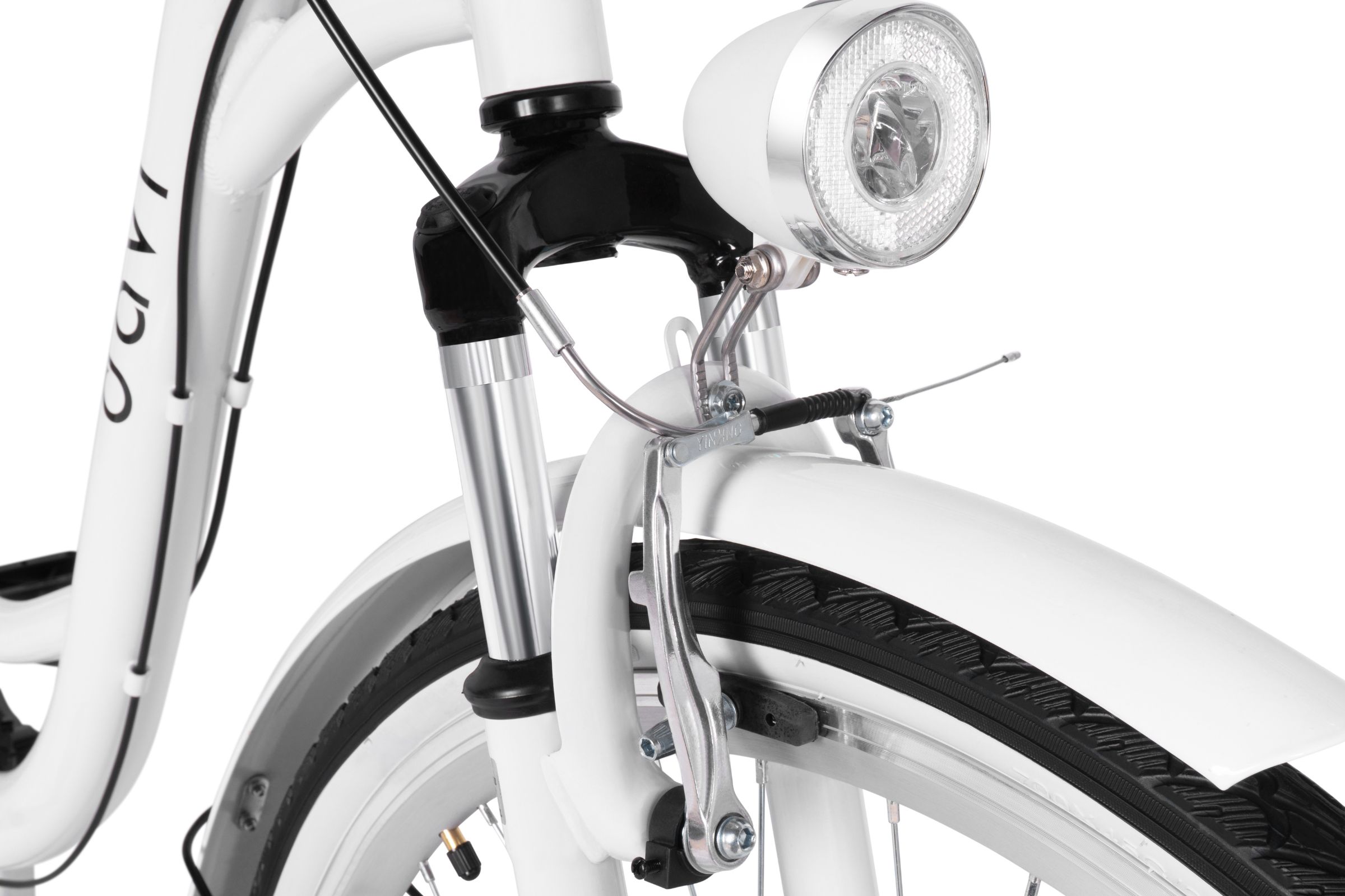 28-tuumaiset alumiinivanteet lisäävät mukavuutta ja varmistavat, että pyörä kulkee vakaasti myös epätasaisilla alustoilla. Teräksiset navat takaavat kestävyyden pitkäaikaisessa käytössä. Ohuet renkaat tekevät ajamisesta kevyttä ja nopeaa. Lisäksi pyörässä on roiskesuojat, jotka pitävät vaatteet puhtaina myös kosteilla alustoilla.