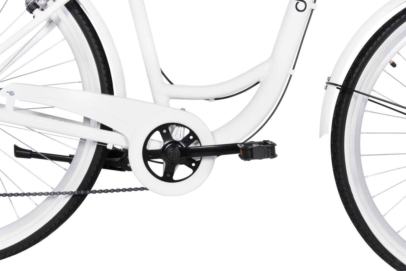 28-tuumaiset alumiinivanteet lisäävät mukavuutta ja varmistavat, että pyörä kulkee vakaasti myös epätasaisilla alustoilla. Teräksiset navat takaavat kestävyyden pitkäaikaisessa käytössä. Ohuet renkaat tekevät ajamisesta kevyttä ja nopeaa. Lisäksi pyörässä on roiskesuojat, jotka pitävät vaatteet puhtaina myös kosteilla alustoilla.