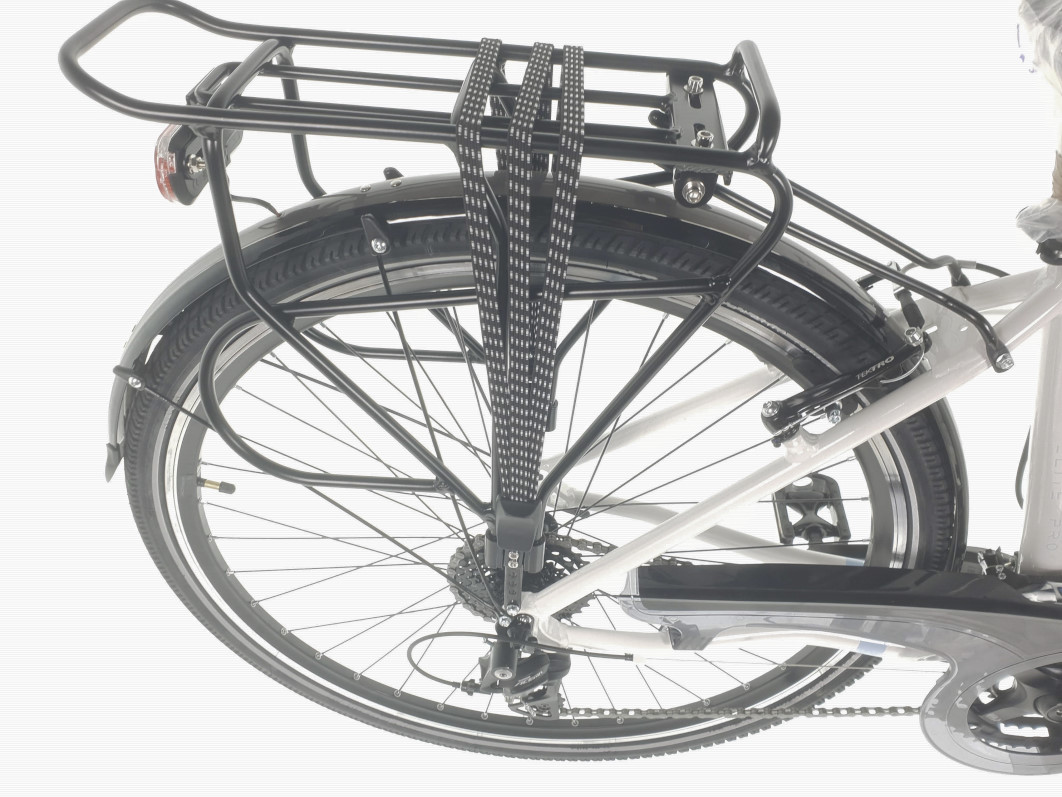 Ergonominen muotoilu mahdollistaa luonnollisen ajoasennon, mikä vähentää väsymystä pitkienkin matkojen aikana. Käytännöllinen tavarateline tarjoaa lisätilaa, mikä tekee pyörästä täydellisen jokapäiväiseen käyttöön tai seikkailuntäyteisille retkille.